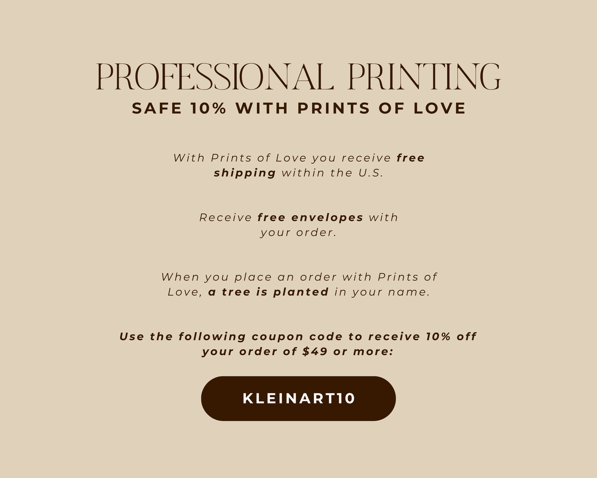 Use thecode KLEINART10 at Prints of Love for 10% off your order of $49 or more!