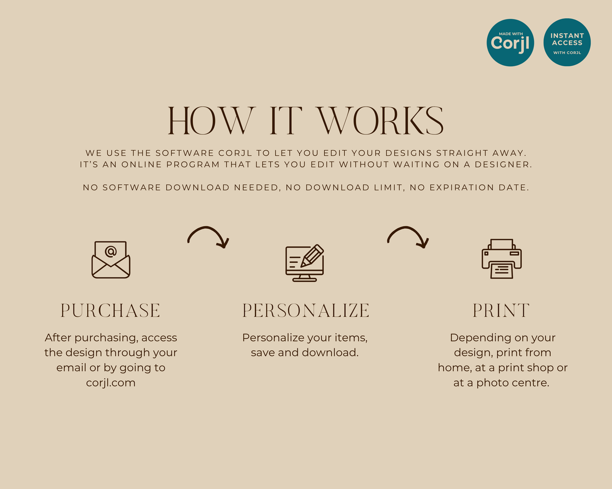 ❥ After purchasing, you will receive an email from Corjl with a link to access and edit your item. You can also go directly to Corjl.com and use your order info to login and access your purchased items.