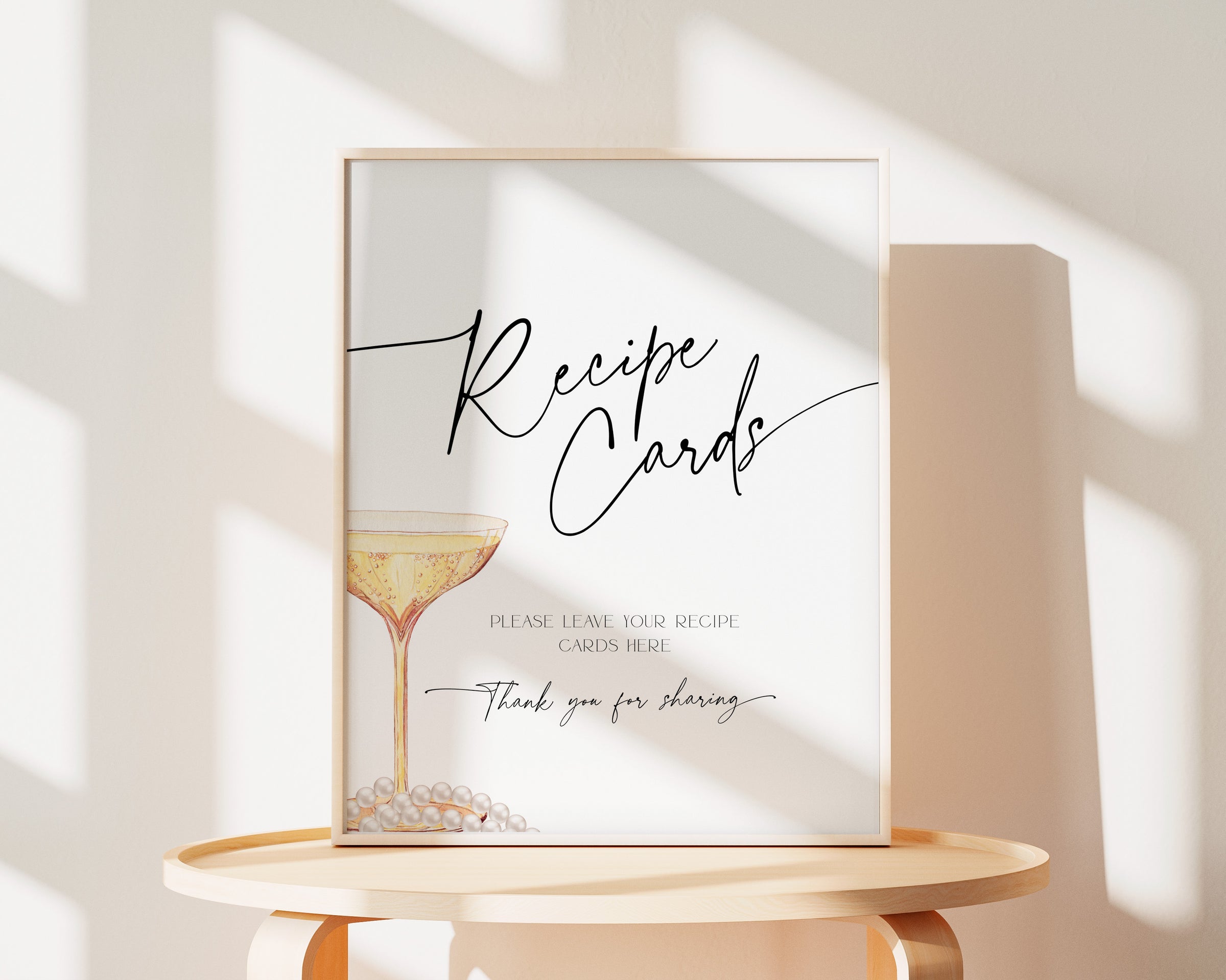 Stylish Recipe Card Sign for Your Pearls and Prosecco Bridal Shower