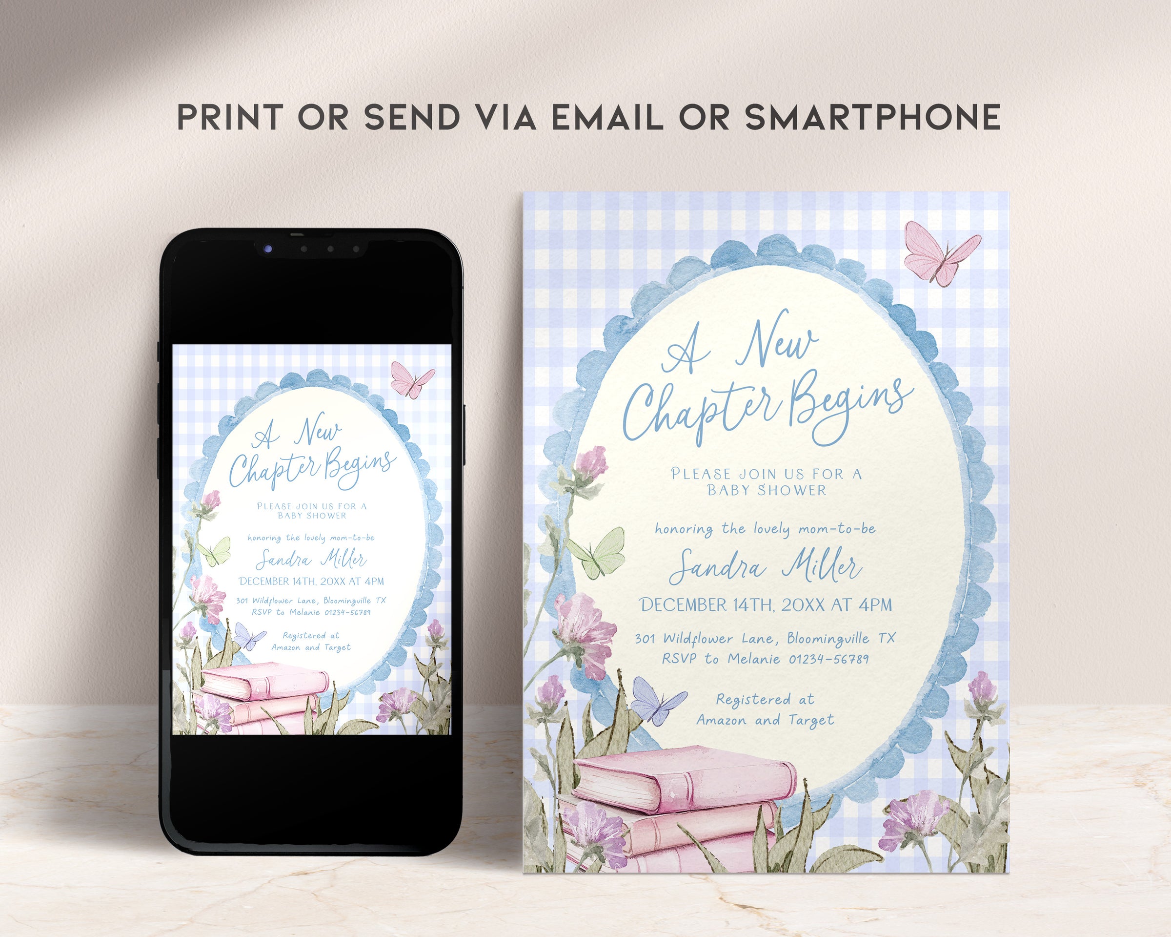 Celebrate your little one’s arrival with our Blue Gingham Baby Shower Invitation. Easy to edit, instant download, and ready to print!
