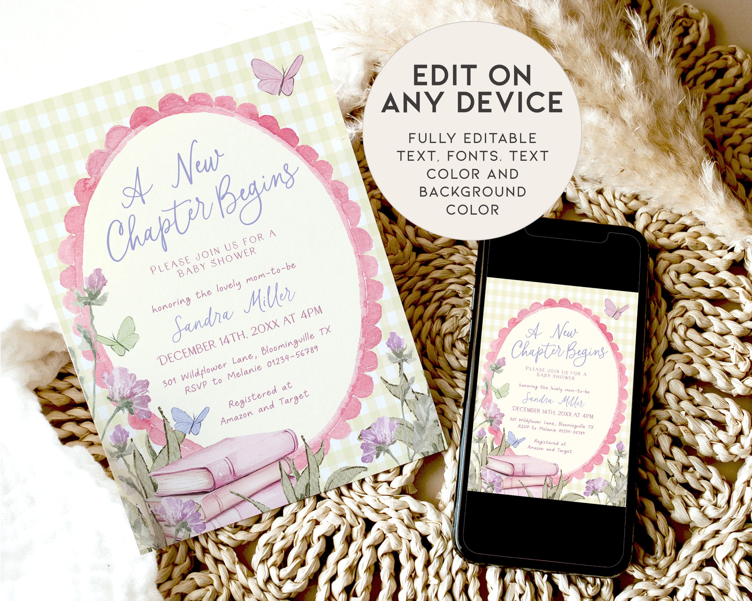 A New Chapter Begins Baby Shower Invite - Yellow Gingham